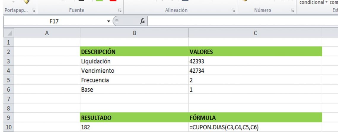 Función Cupon.Dias