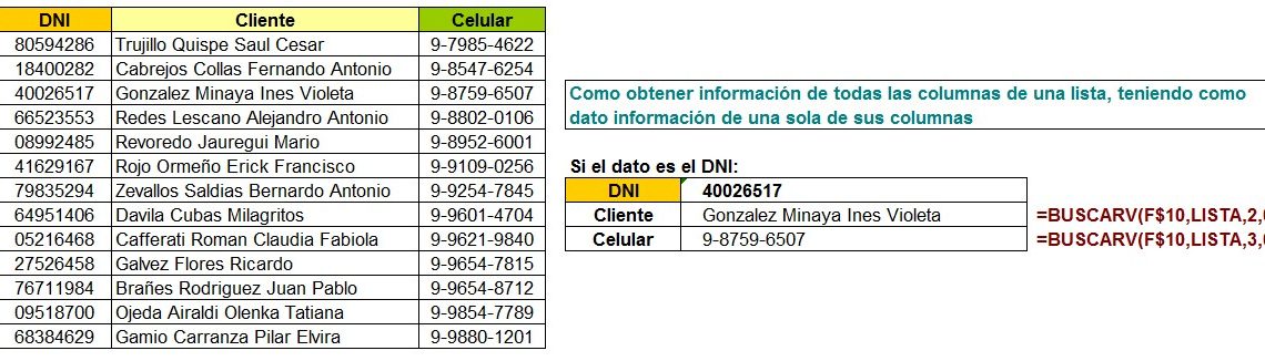 Para hacer una búsqueda con la función BUSCARV o en otras versiones es CONSULTAV sobre los datos de ejemplo, seguiremos los siguientes pasos: